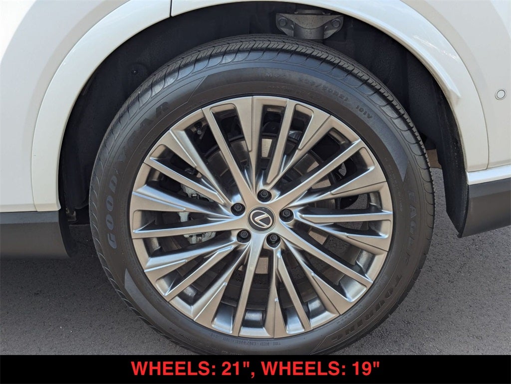RX 350 Luxury, 4D Sport Utility, 2.4L I4 PDI Turbocharged DOHC 16V LEV3-SULEV30 275hp, 8-Speed Automatic, AWD, Eminent White Pearl, Black w/ Black Cascade Trim w/NuLuxe Seat Trim, 10-Way Power Driver & Fr Passenger Seat Adjusters, 12 Speakers, Advanced Park, Anti-whiplash front head restraints, Auto High-beam Headlights, Auto tilt-away steering wheel, Auto-dimming door mirrors, Auto-dimming Rear-View mirror, Automatic temperature control, Brake assist, Cold Area Package, Digital Key, Electronic Stability Control, Emergency communication system: Safety Connect (10-year trial), Exterior Parking Camera Rear, Finish Plate Door Inner Garnish, Front fog lights, Fully automatic headlights, Garage door transmitter: HomeLink, Genuine wood console insert, Head-Up Display (HUD), Heads-Up Display, Heated & Ventilated Front Bucket Seats, Heated steering wheel, Illuminated entry, Leather Shift Knob, Leather steering wheel, Low tire pressure warning, Luxury Package, Navigation System, Outside temperature display, Panorama Glass Roof, Panoramic View Monitor w/BSM, Parking Support Alert/Brake, Power Folding Rear Seats, Power Liftgate, Power Rear Door w/Kick Sensor, Premium Paint (PJ), Premium Triple-Beam LED Headlamps, Radio: Lexus Interface w/14 HD Touchscreen Display, Rear air conditioning, Remote keyless entry, Security system, Semi-Aniline/Synthetic Suede Leather Seat Trim, Spoiler, Steering wheel memory, Steering wheel mounted audio controls, Telescoping steering wheel, Traffic Jam Assist, Turn signal indicator mirrors, Wheels: 21, Wireless Apple CarPlay/Wireless Android Auto, Wireless Charger, Wood Steering Wheel w/Paddle & Heater.